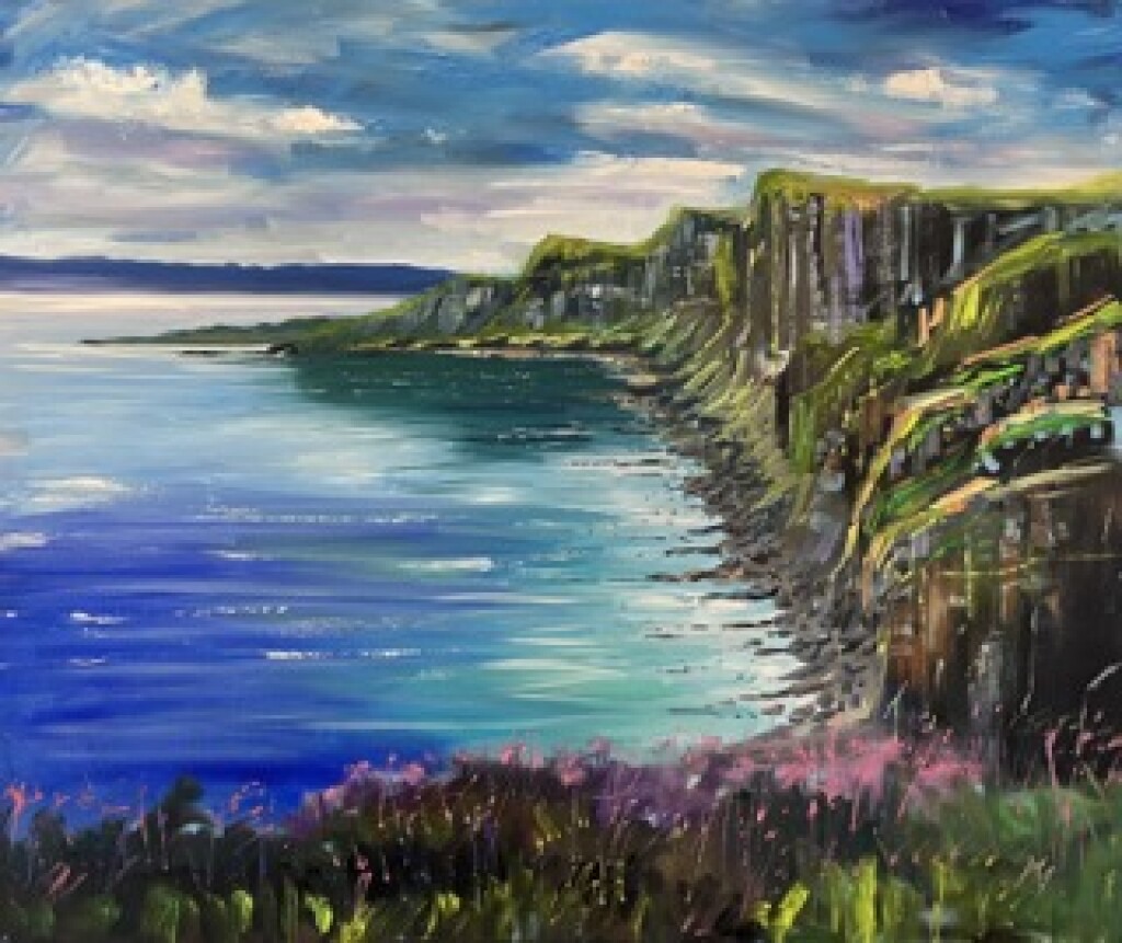 https://michaelmurphyscottishartist.com/scottish-islands/emerald-light-kilt-rock-skye-scotland